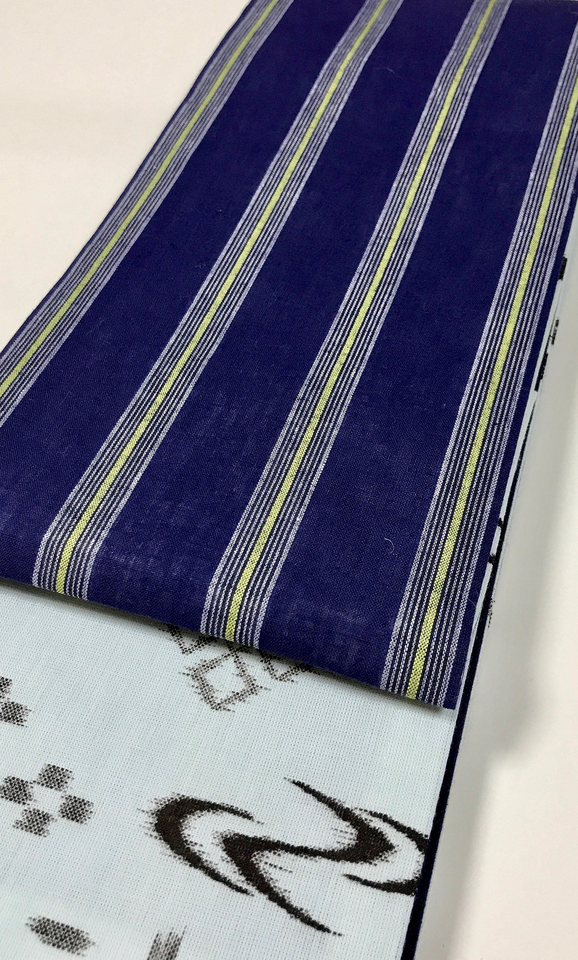 綿麻紺地の太ストライプはシンプルだからこそ、どんな浴衣や着物とも合わせやすいのが特徴です。
